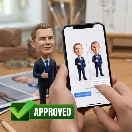 Before your bobblehead is finalized, you receive a preview photo. You can request minor adjustments to ensure you’re completely happy before it ships.