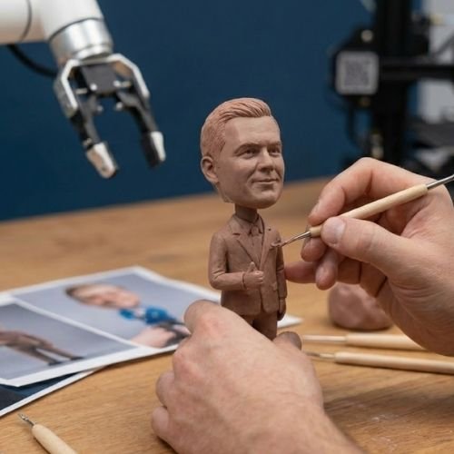 Each bobblehead is sculpted by hand, allowing for far greater detail and likeness than automated 3D printing. Facial features, expressions, hairstyles, and accessories are carefully crafted from your uploaded photo.