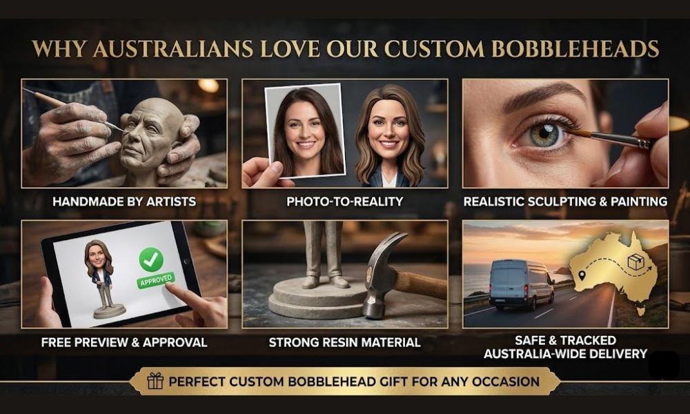 Looking for a unique, memorable personalized gift in Australia? Our custom bobbleheads from photo are handcrafted to capture real facial expressions, body posture, and personality — turning an ordinary photo into a one-of-a-kind keepsake.