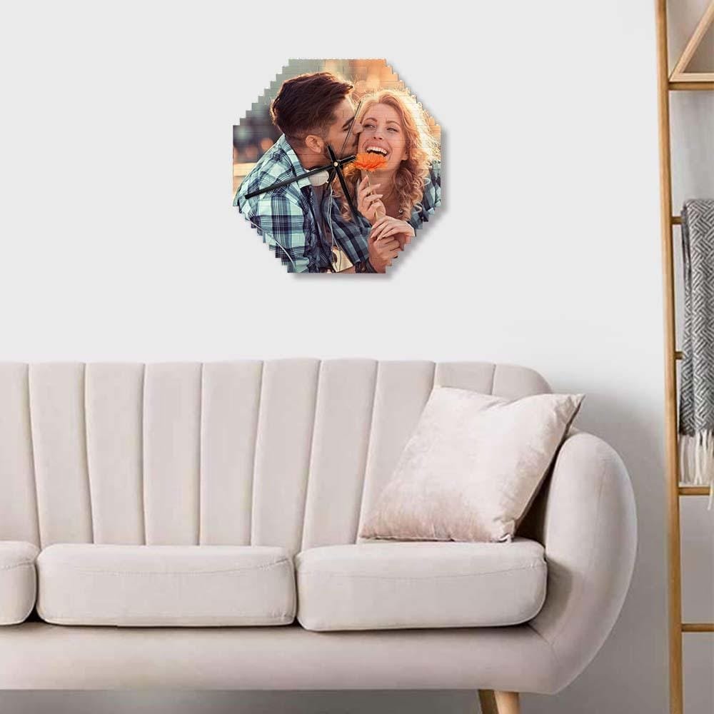 Custom Building Blocks Wall Clock, Personalized Puzzle Brick Photo Clock, Unique Couple Gift for Home Décor and Special Occasions