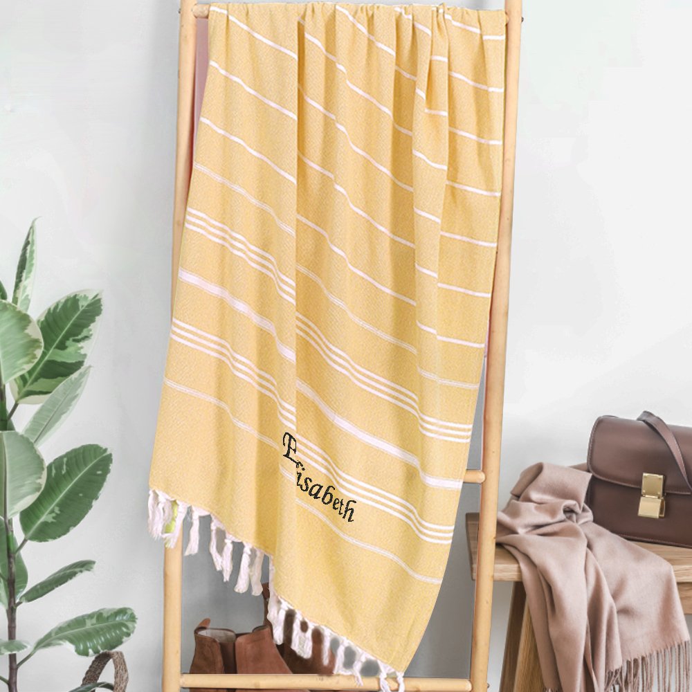 Personalized Name Fringe Beach Towel, Custom Bridesmaids’ Gift, Unique Wedding Gift, Personalized Beach Towel for Bridal Party or Special Occasions