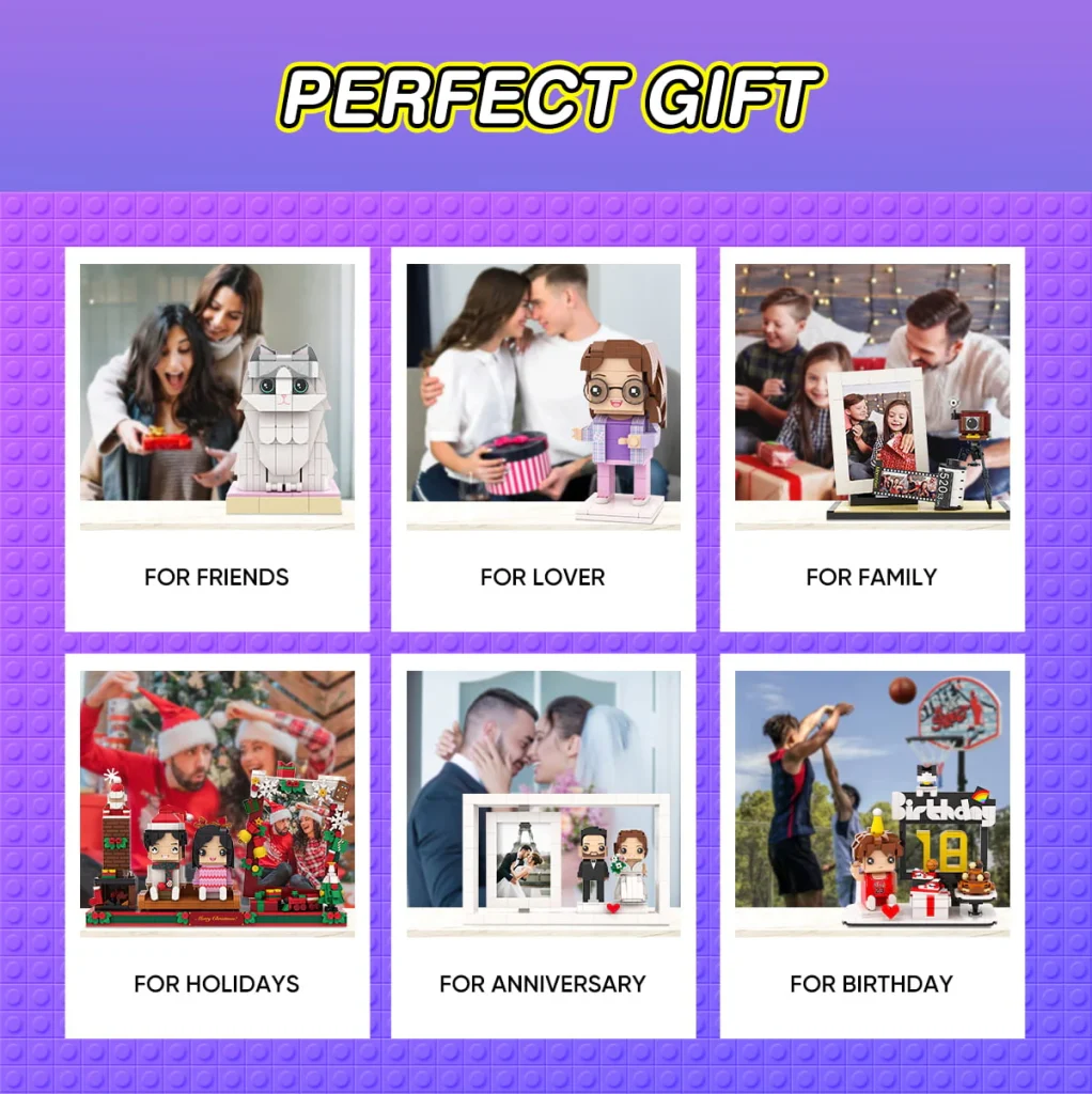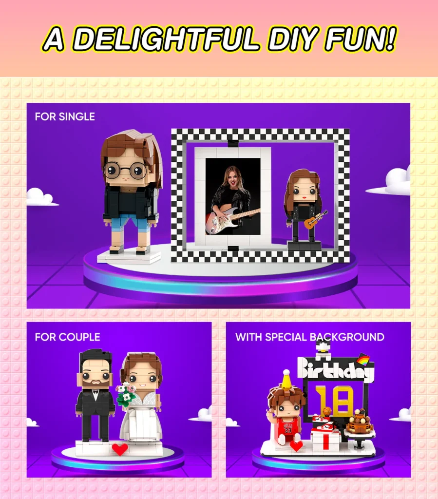 Create a unique and playful gift with our Custom Brick Figures featuring 4 Cats & Frame! Personalize the figures to represent your beloved cats and display them in a stylish frame — a purrfect keepsake for any cat lover. 🐱✨