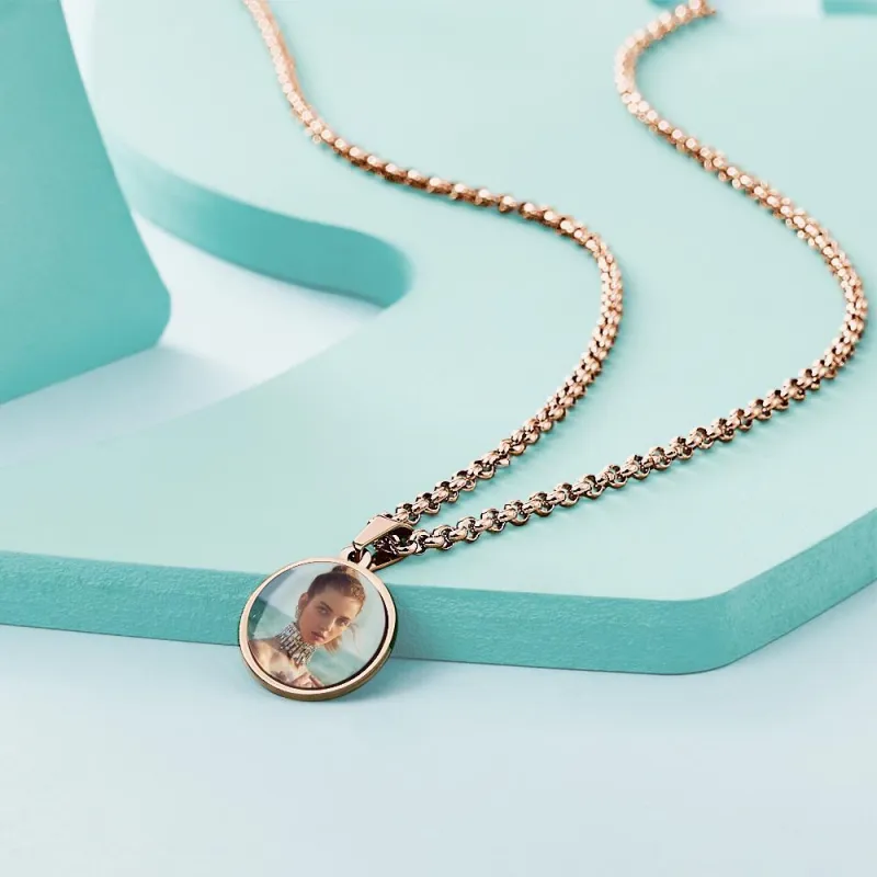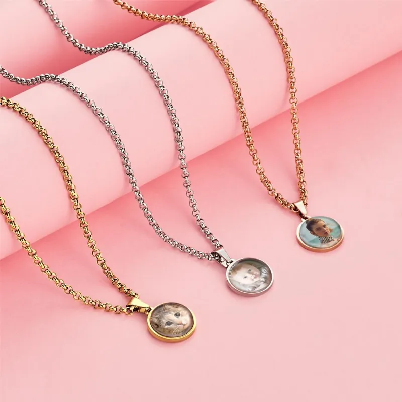 Capture cherished memories with this custom photo engraved necklace, perfect for weddings, anniversaries, or special occasions. This personalized double-sided pendant allows you to carry your favorite photos wherever you go, making it a unique and meaningful gift.
