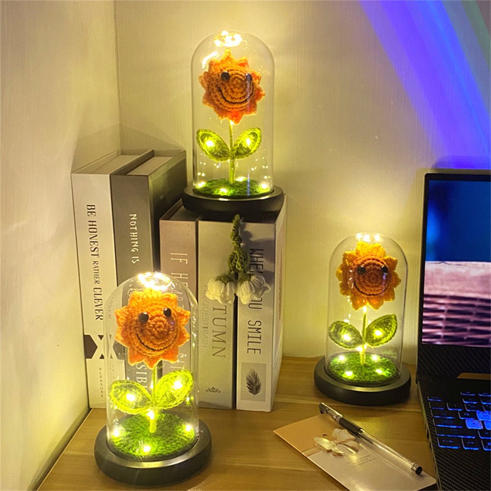 Wedding Gifts for Couple – Crochet Flower Lamp with Glass Dome – Handmade Rose and Sunflower Light for Romantic Home Décor