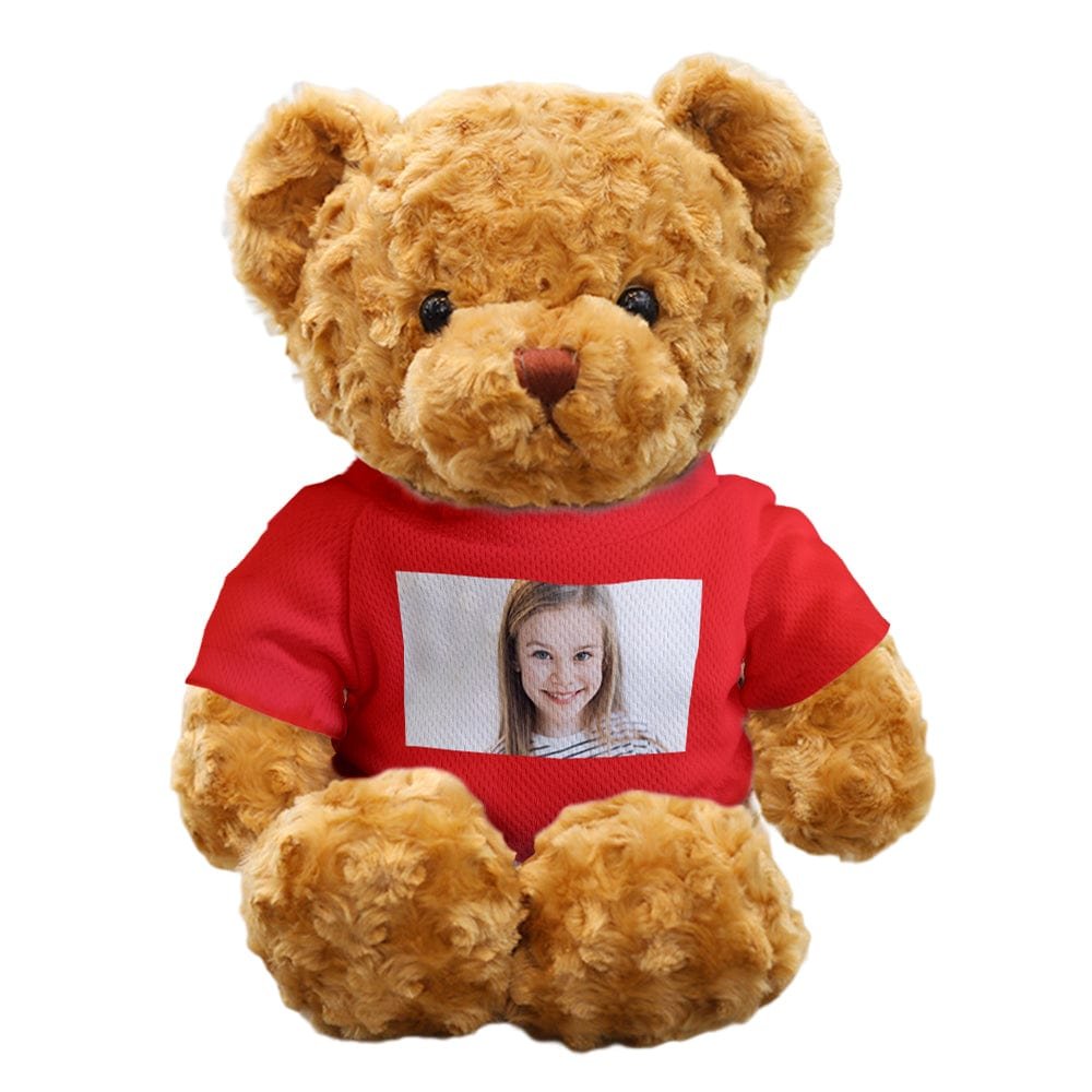 • Customize with a photo, adding a personal and sentimental touch to this adorable teddy bear plush