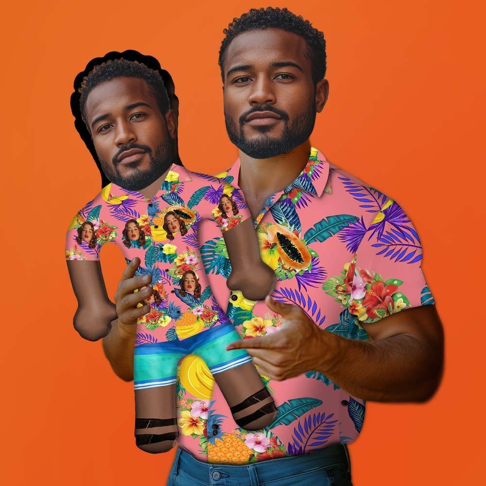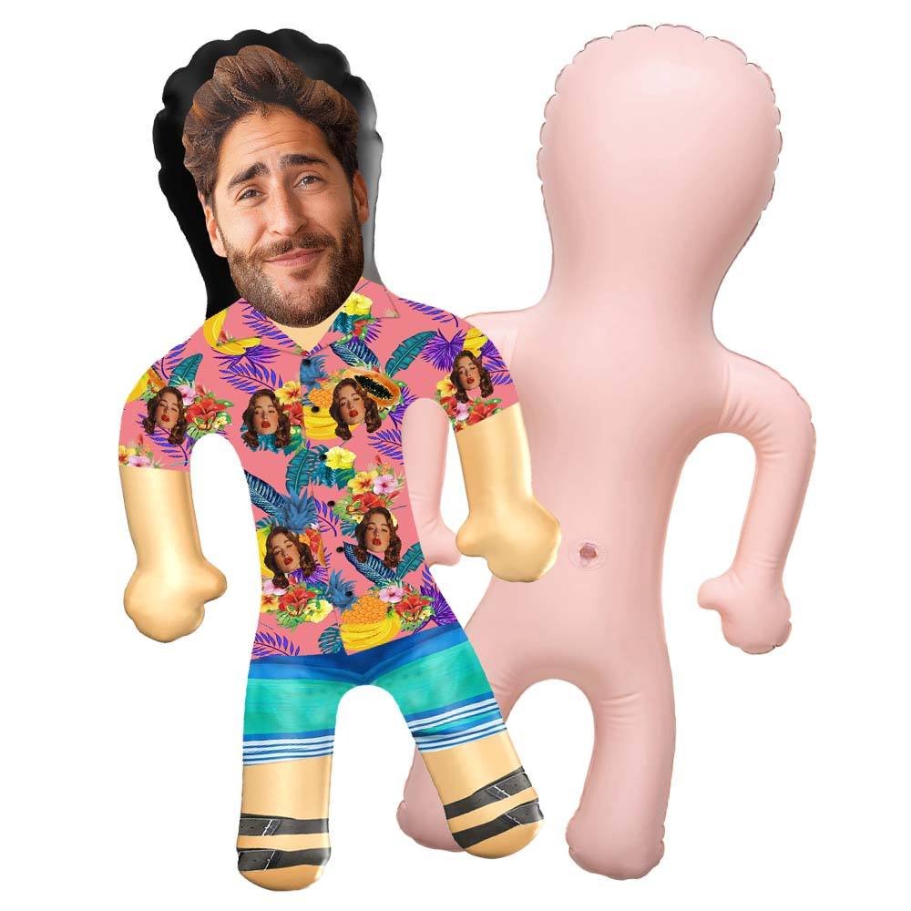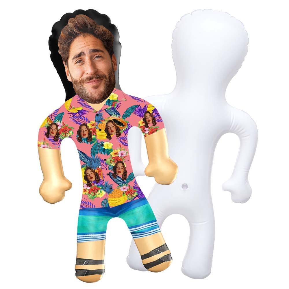 Personalized Blow-Up Doll Shirt with Funny Printed Face, Flowers, and Fruits Design, Inflatable Man for Party Favors, Gag Gifts, and Decorations