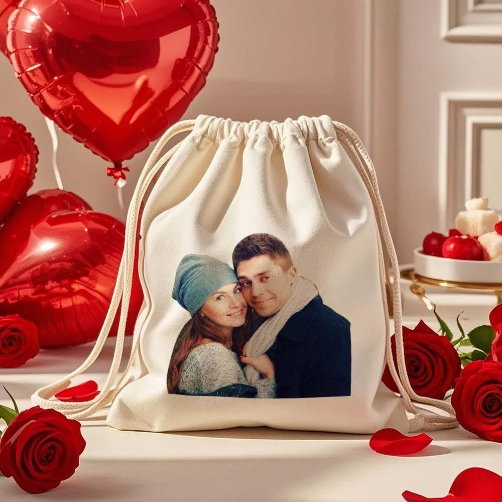 Personalised Photo Drawstring Bag | Custom Canvas Pouch