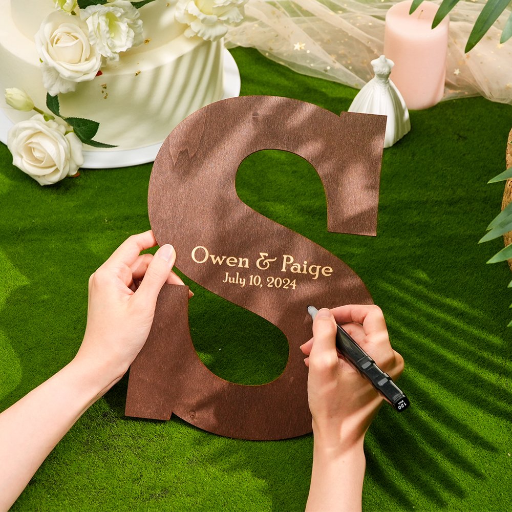 • 💍 Features a brown wooden letter or name sign that guests can sign, turning heartfelt messages into lasting décor