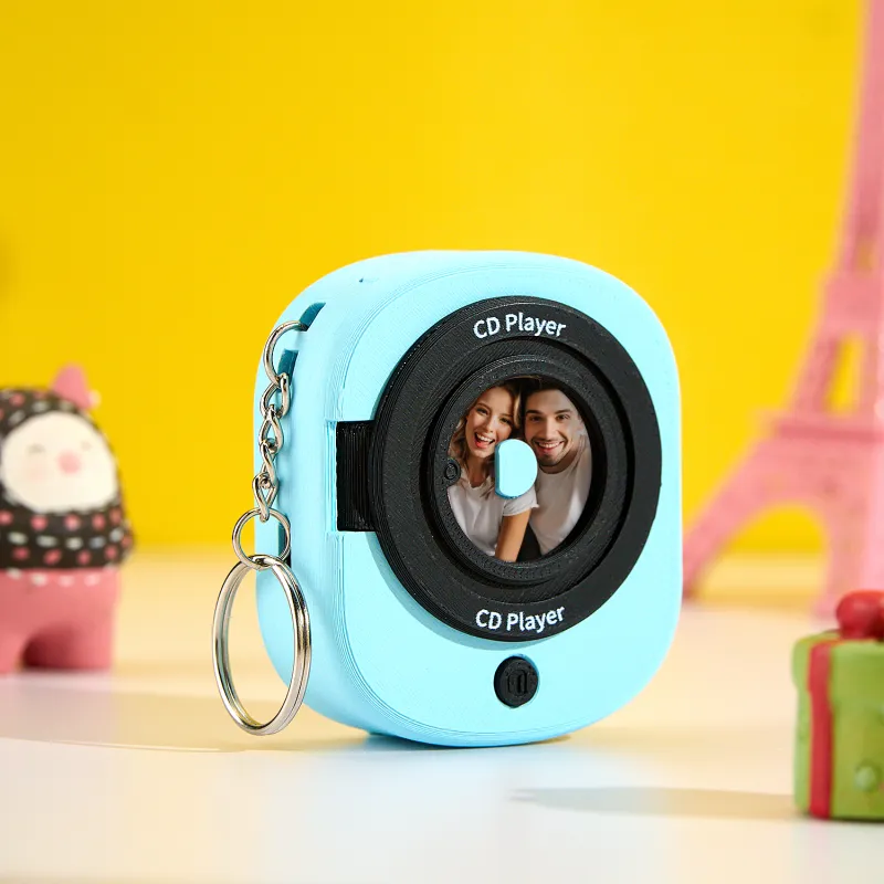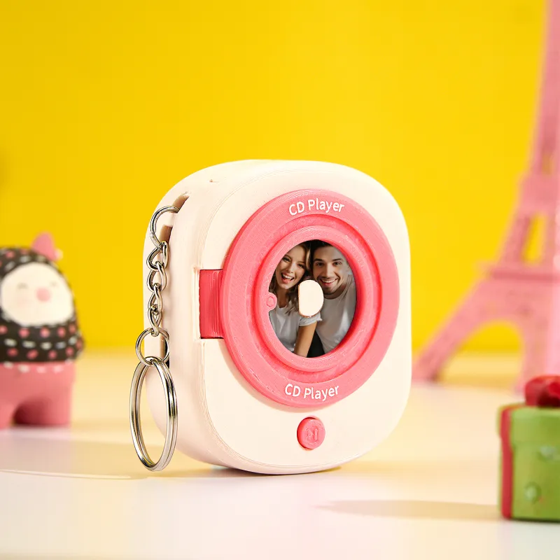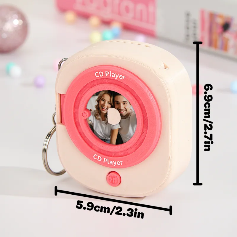 • 🎶 Includes a custom photo disc that slides into a mini record player–style keychain for a playful, vintage touch