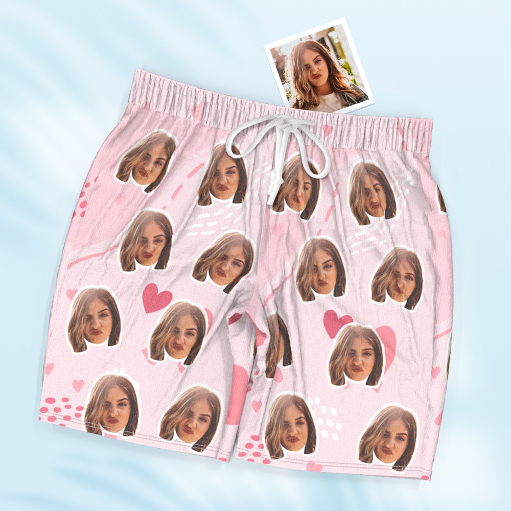 • 💗 Features your custom face printed across pink pajamas decorated with charming heart patterns for a fun, loving touch