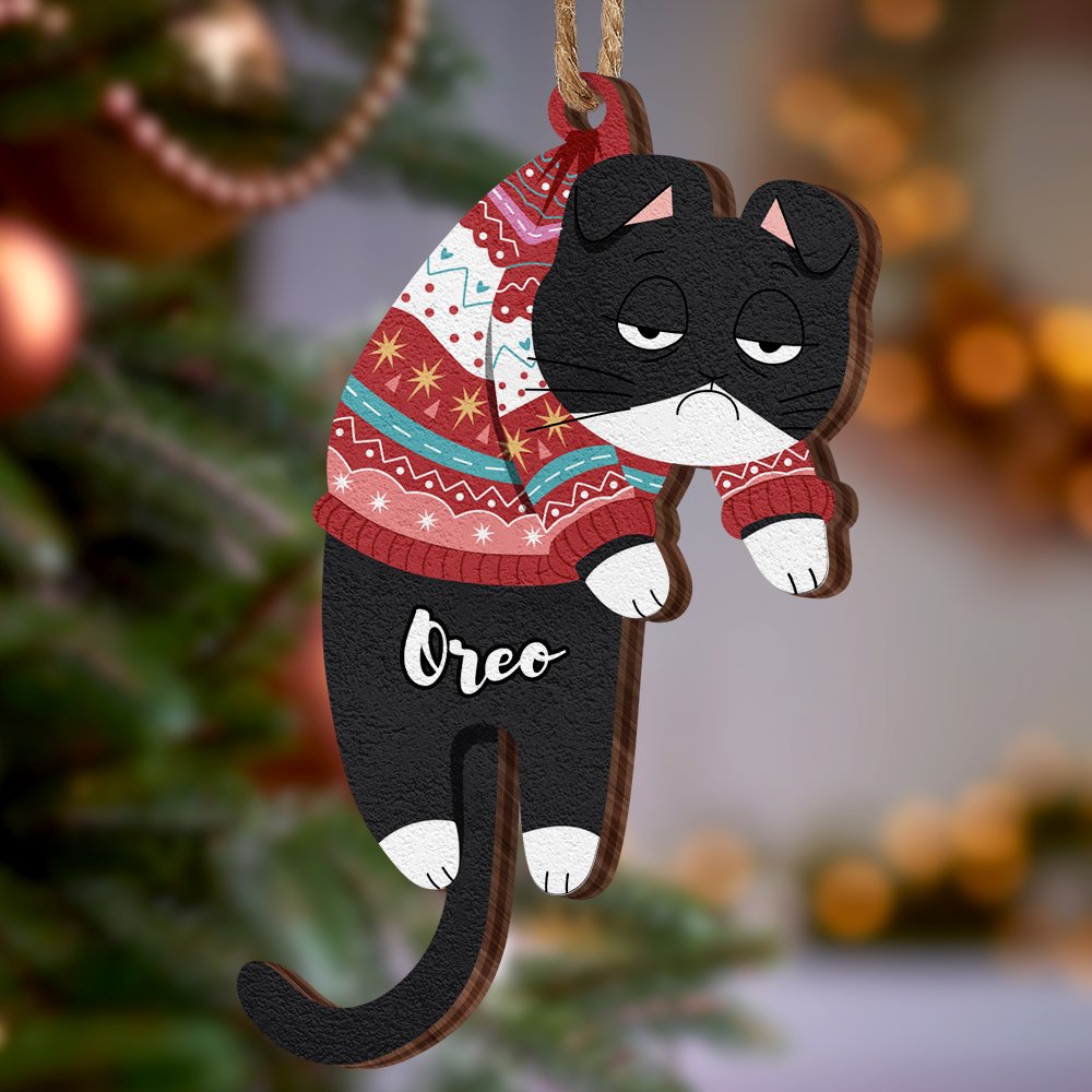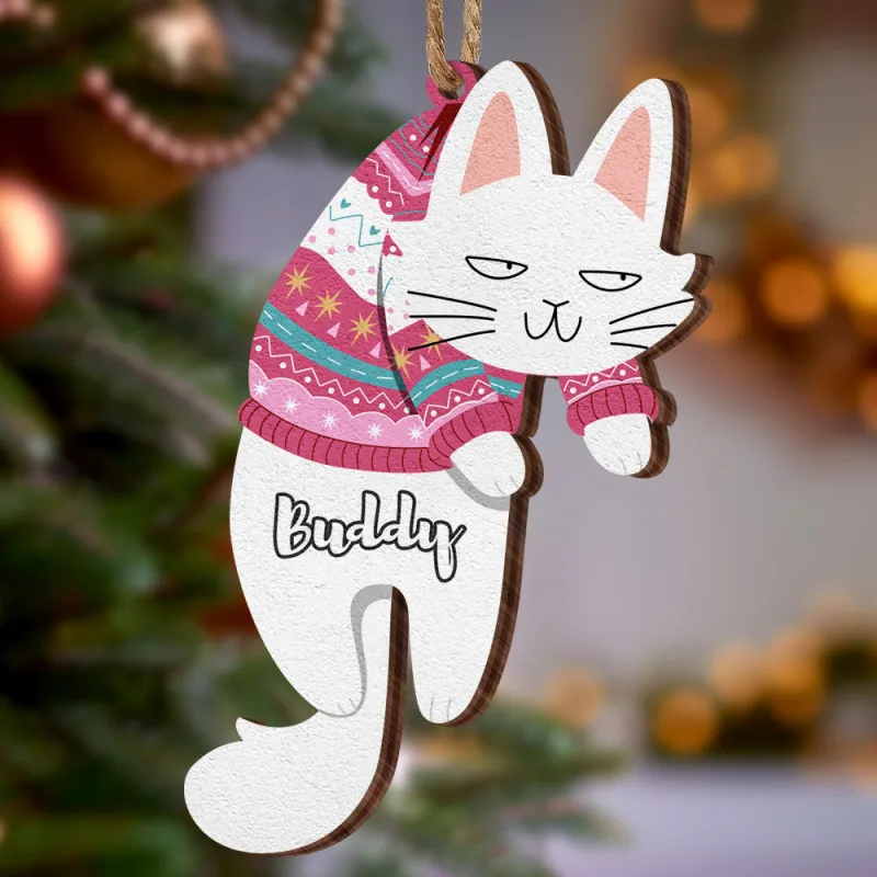 Personalized Name Christmas Tree Ornament | Wooden Cat Gift