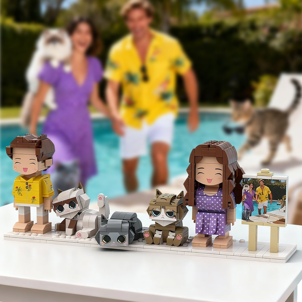 Celebrate your family and furry companions with Custom Full-Body Cute Brick Figures of 2 People and 3 Cats, handcrafted from your photos and beautifully displayed in a premium frame πŸ§±πŸ˜ΊπŸ˜ΊπŸ˜ΊπŸ’–βœ¨ A heartwarming keepsake that transforms treasured memories into adorable miniature art!