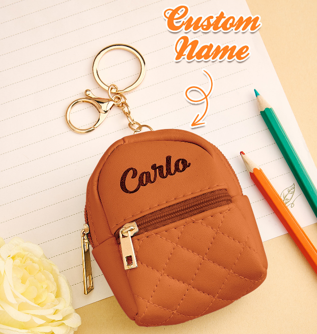 Personalized Name PU Leather Backpack Keychain | Custom Mini Bag Gift