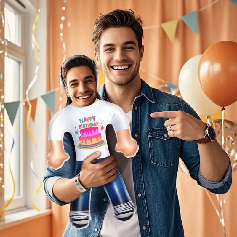 Custom Face Birthday Cake T-Shirt Balloon Blow Up Doll | Funny Inflatable