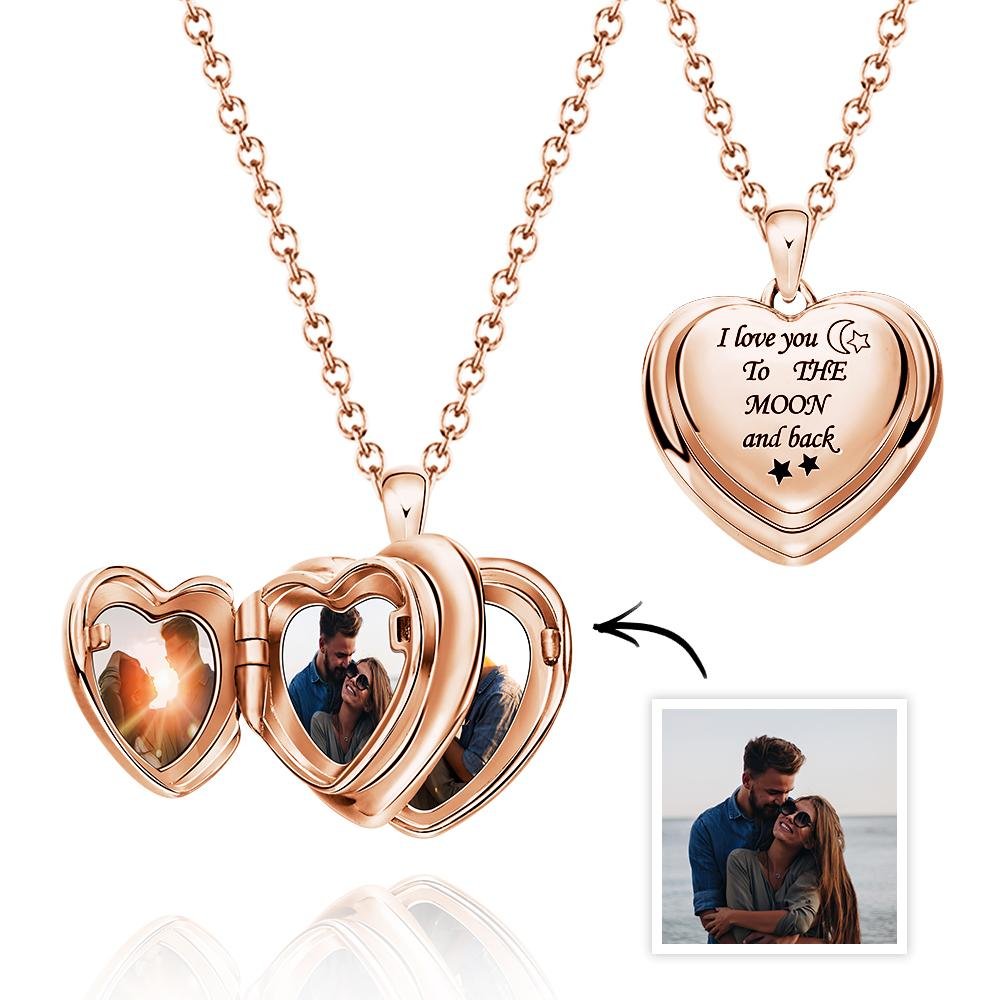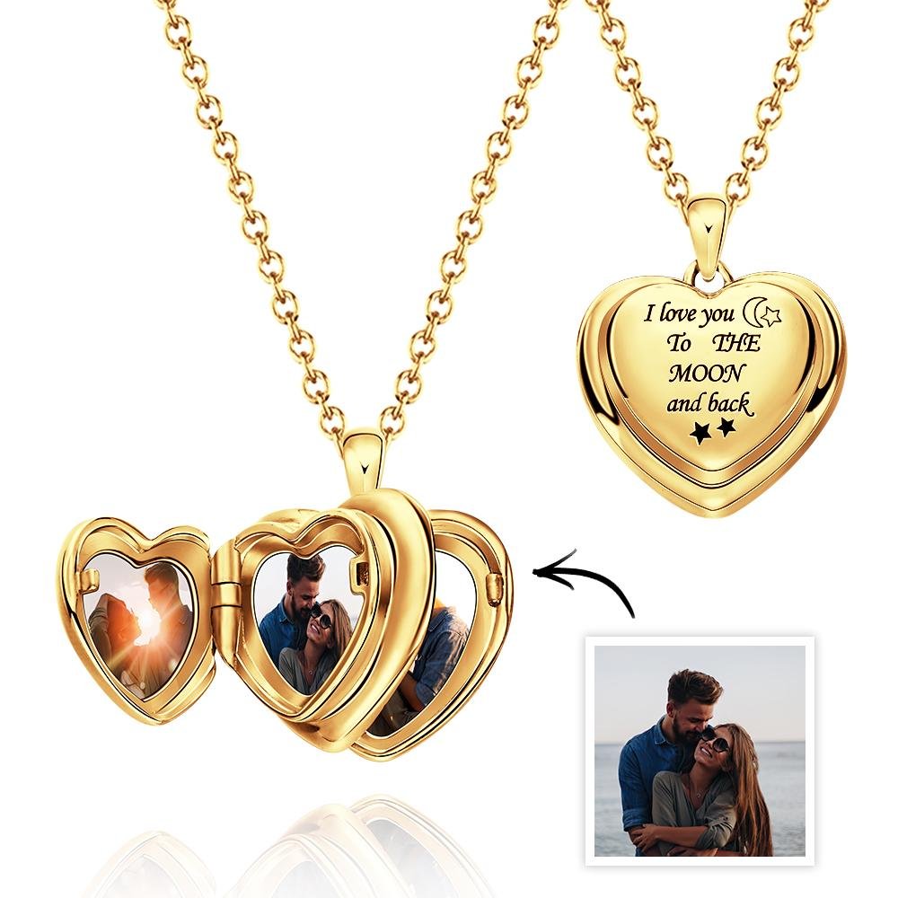 Custom Photo Locket Necklace | “I Love You to The Moon and Back” | 4 Photos Pendant Gift for Women