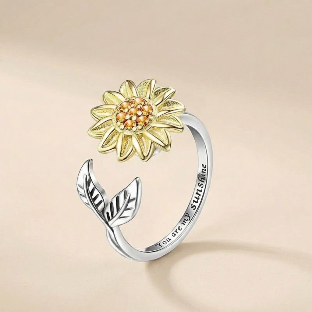 Sunflower Fidget Ring | Adjustable Stress Relief Jewelry Gift for Him/Her