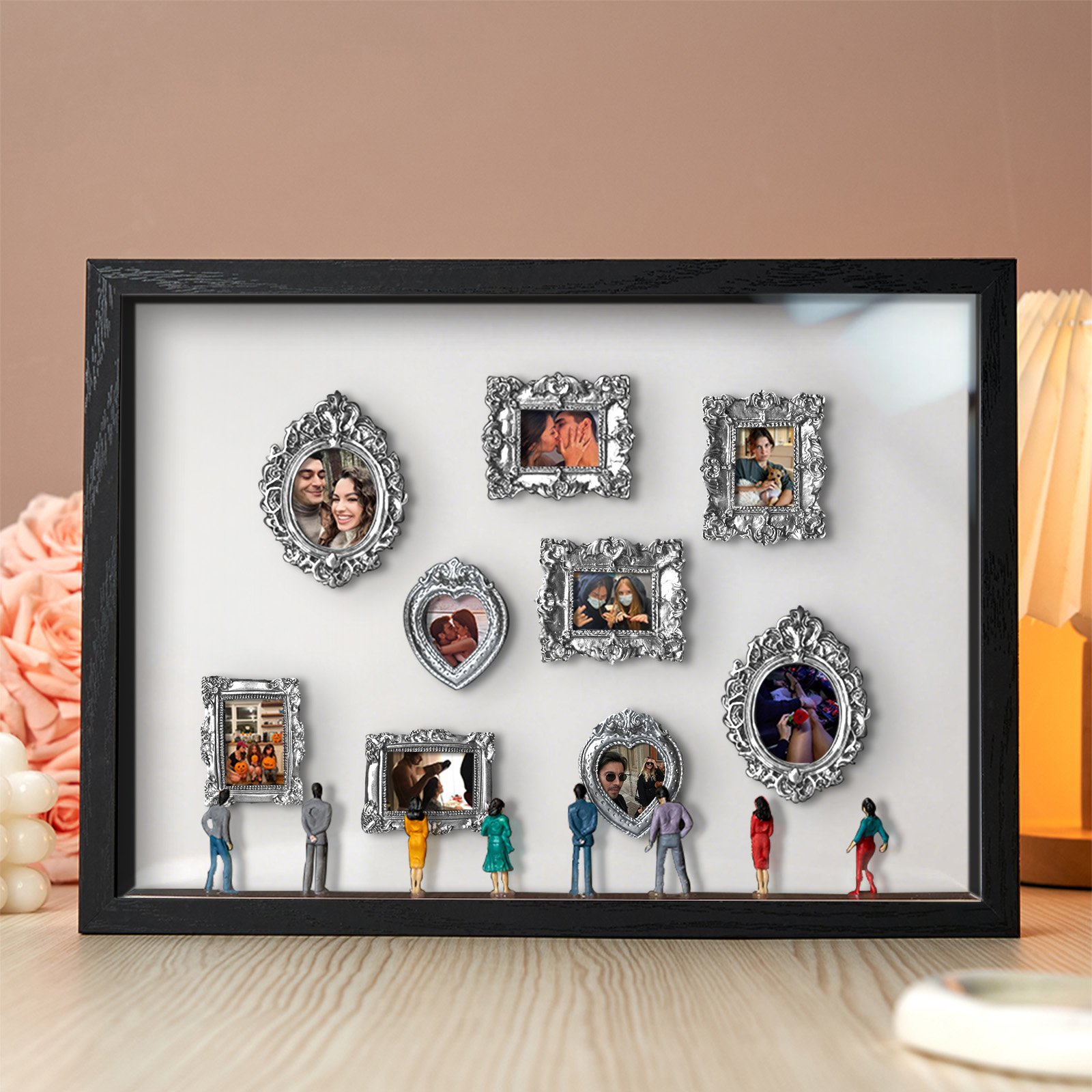 📸 Light-Up Story: Soft spot lights highlight your photos and miniature scene with a gentle glow.